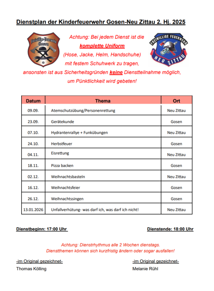 Kinderfeuerwehr 2. Halbjahr 2025