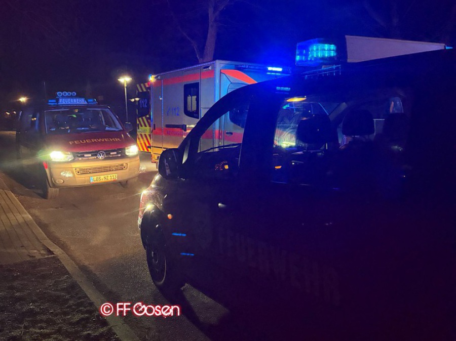 Kräfte vor Ort: FF Gosen, FF Neu Zittau, FF Hartmannsdorf, FF Erkner, FKTZ LOS (GW-L), Amtswehrführer, Rettungsdienst, Notarzt, DRF-Luftrettung (ITH CHR Berlin), Polizei